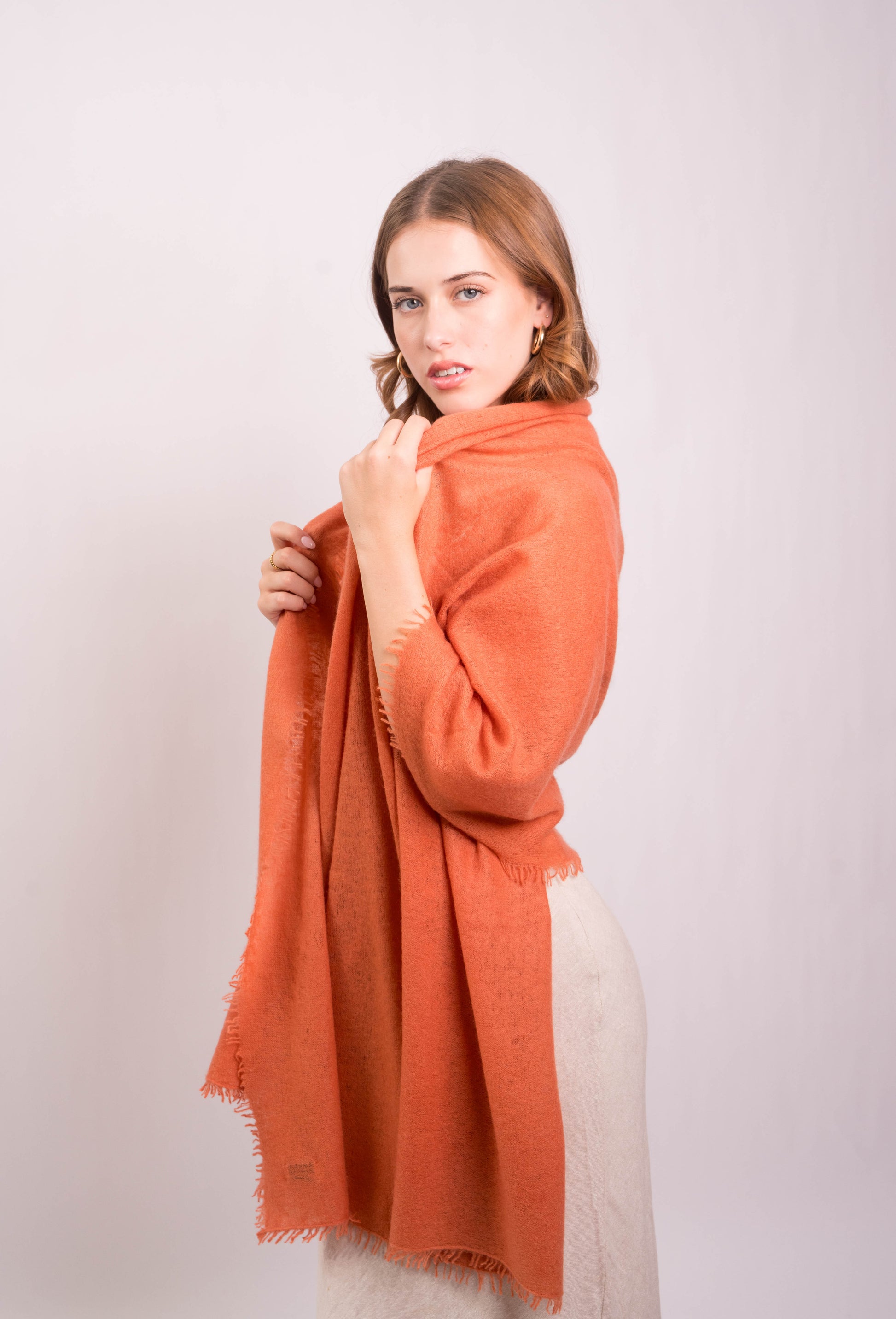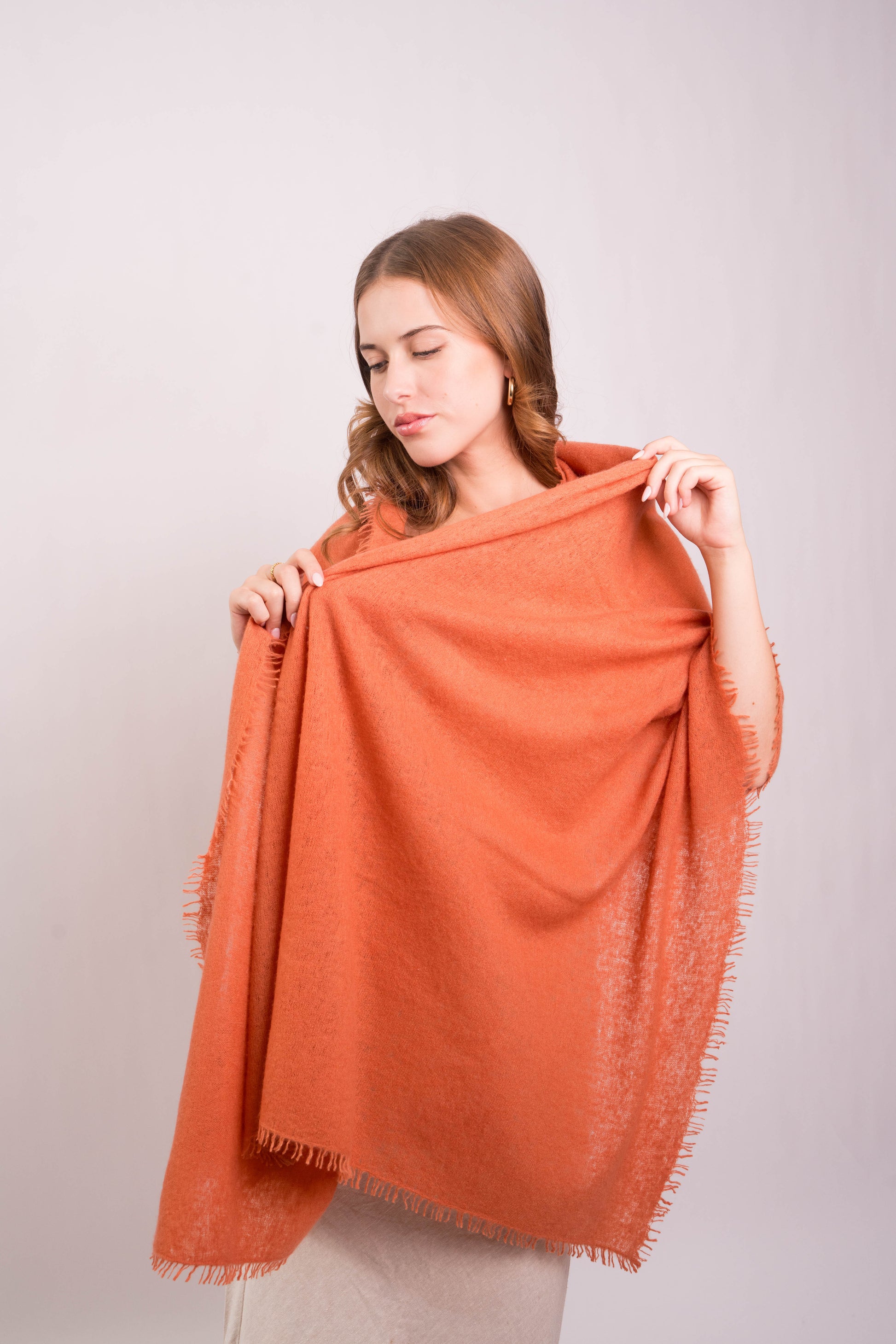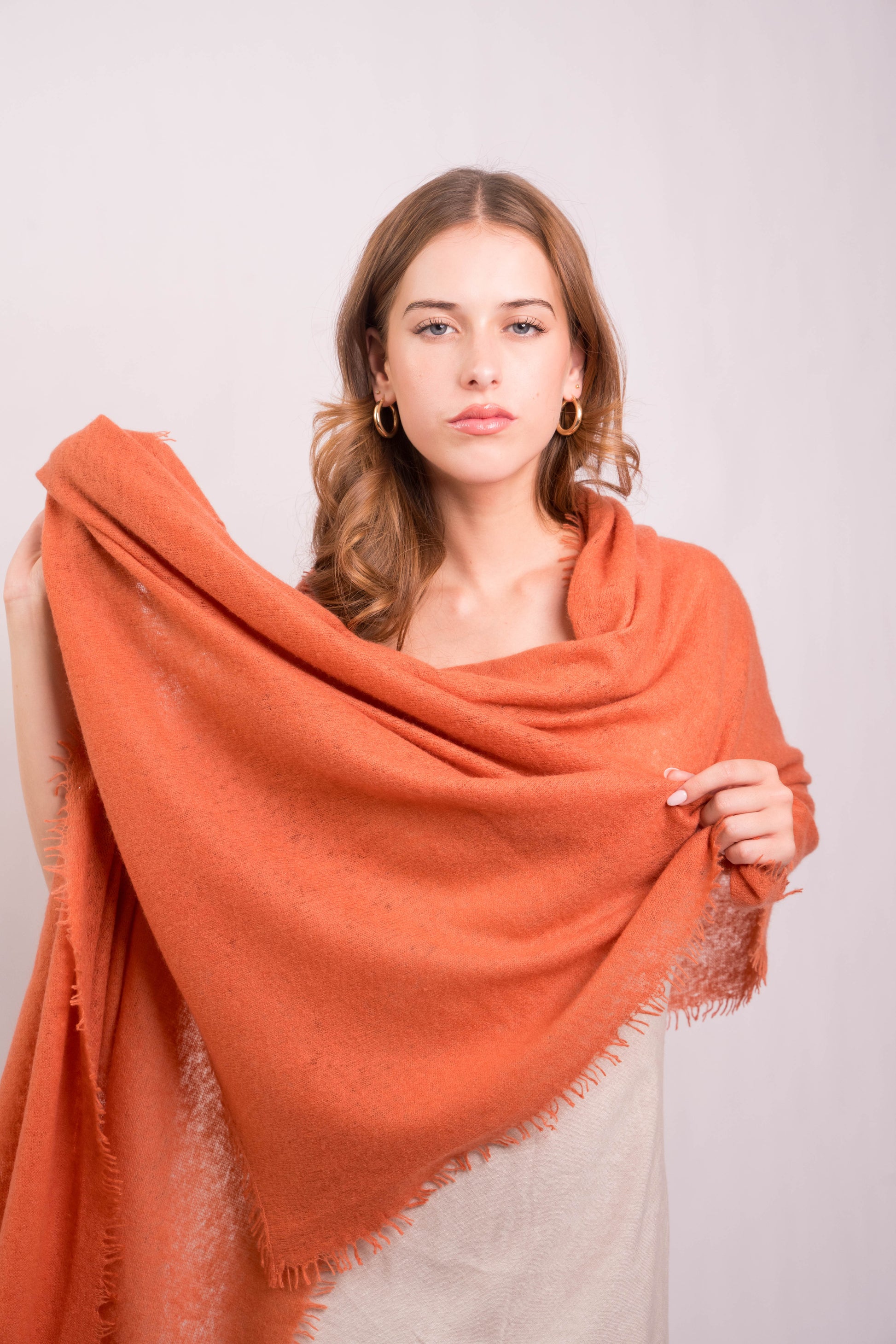 The warm autumnal tones bring a refined yet vibrant touch to your wardrobe, making this wrap a versatile statement piece for both casual and elevated styling. Whether draped over your shoulders, wrapped as a scarf, or styled as a chic shawl, the Autumn Felted Cashmere Wrap ensures sophistication, comfort, and effortless charm wherever you go.