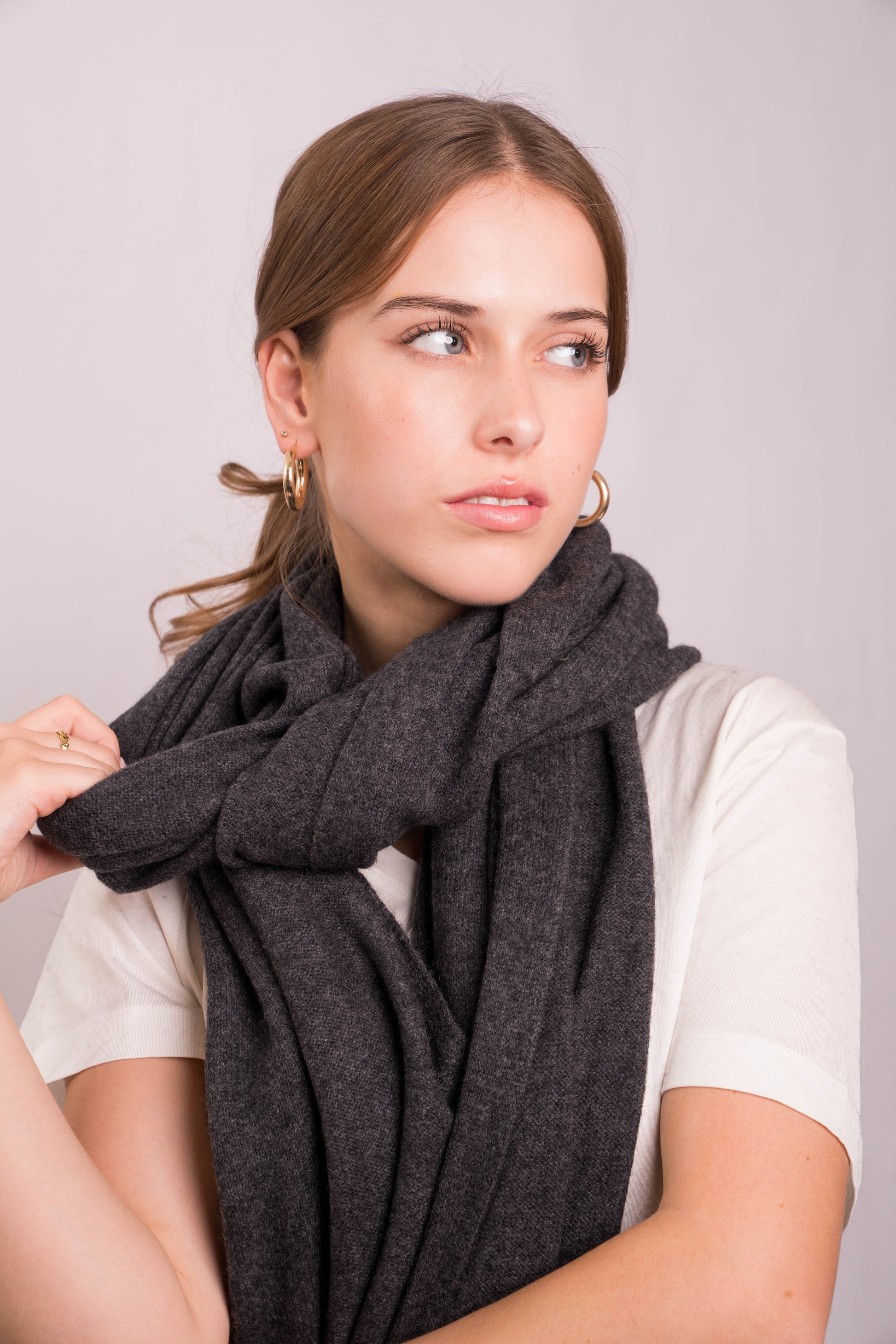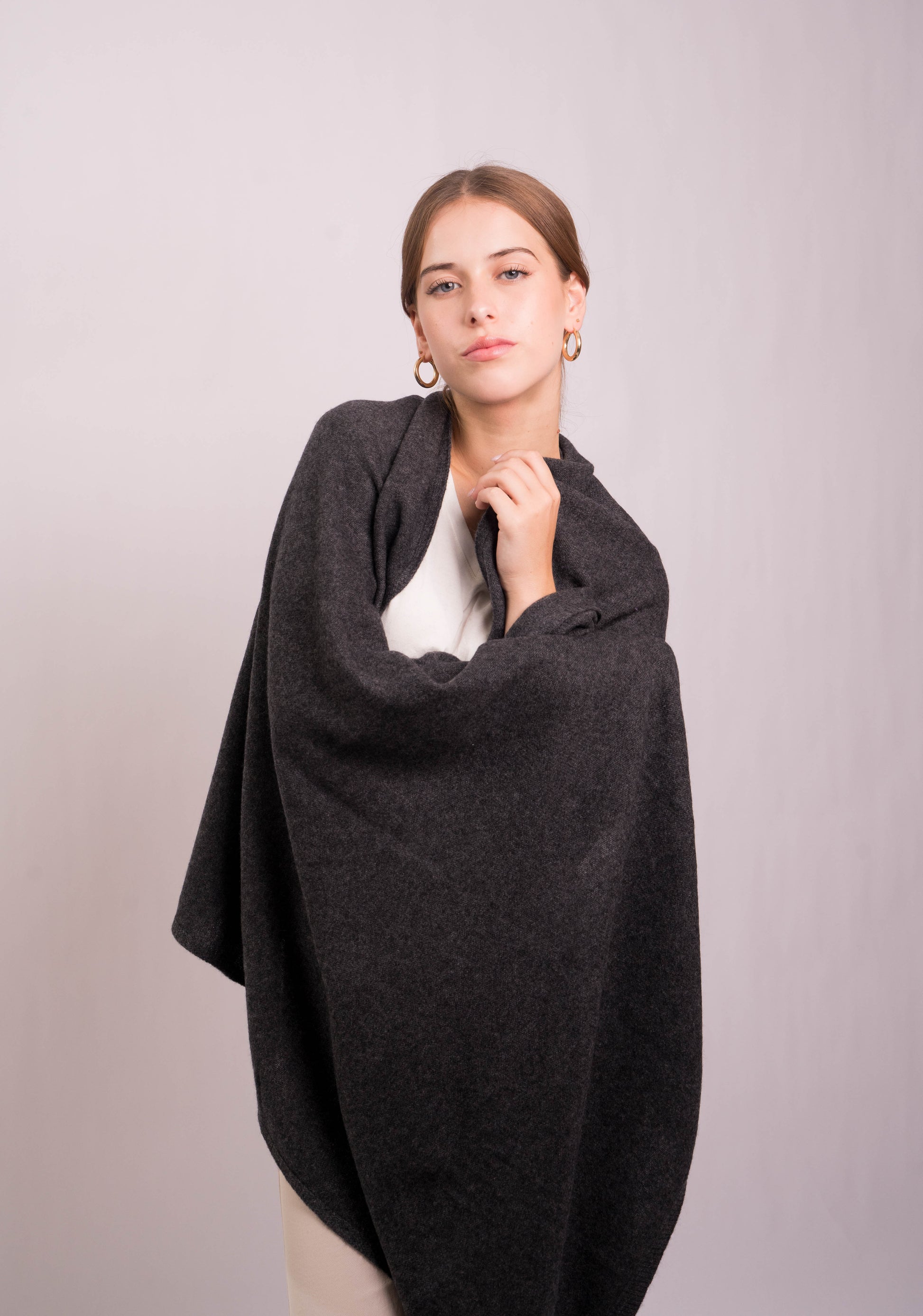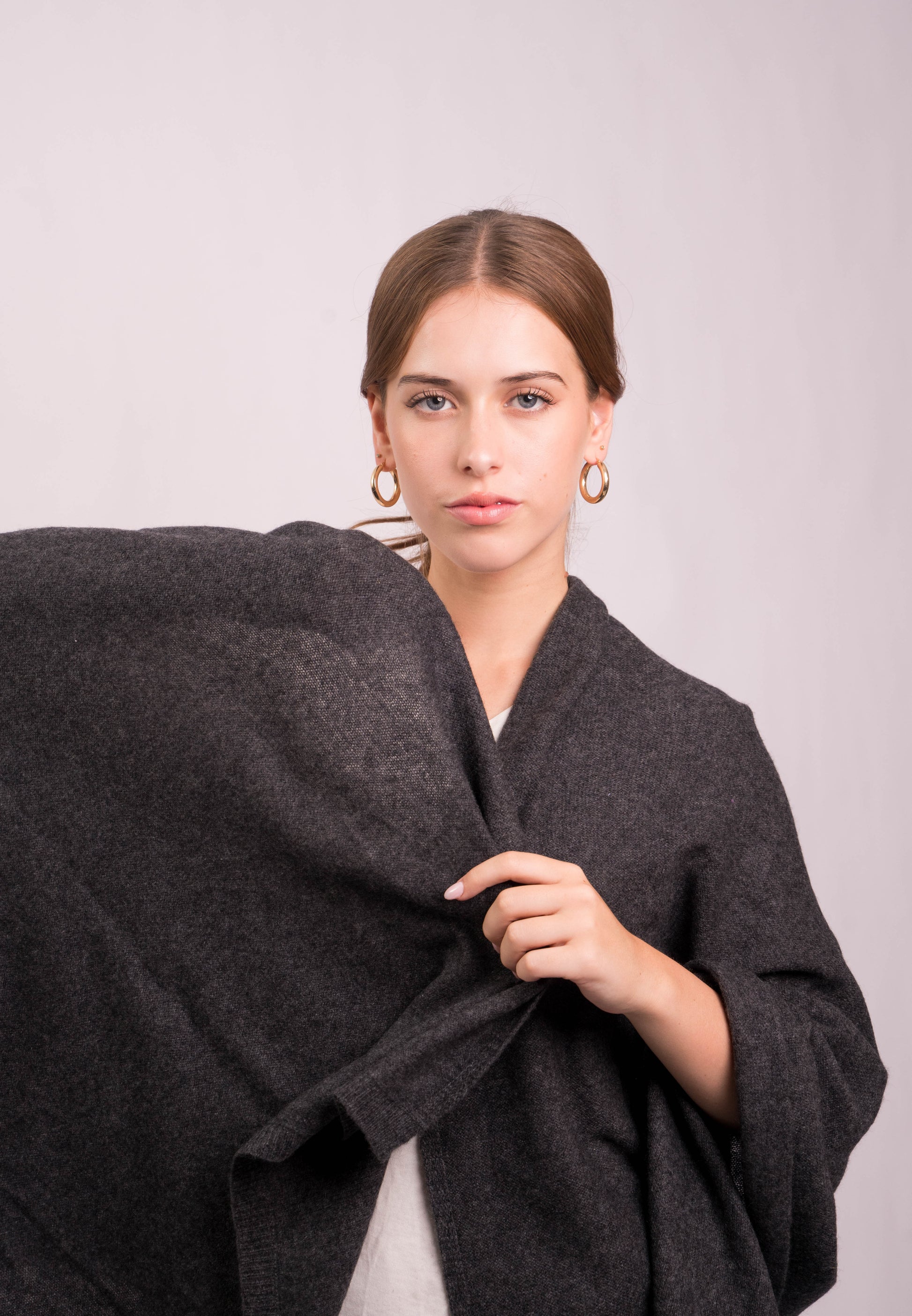 Its deep charcoal hue adds a refined, contemporary touch to any outfit, making it ideal for both casual elegance and elevated styling. Whether you’re jet-setting to new destinations, enjoying a cozy evening, or adding a sophisticated layer to your everyday look, this luxurious cashmere wrap is your ultimate travel companion.