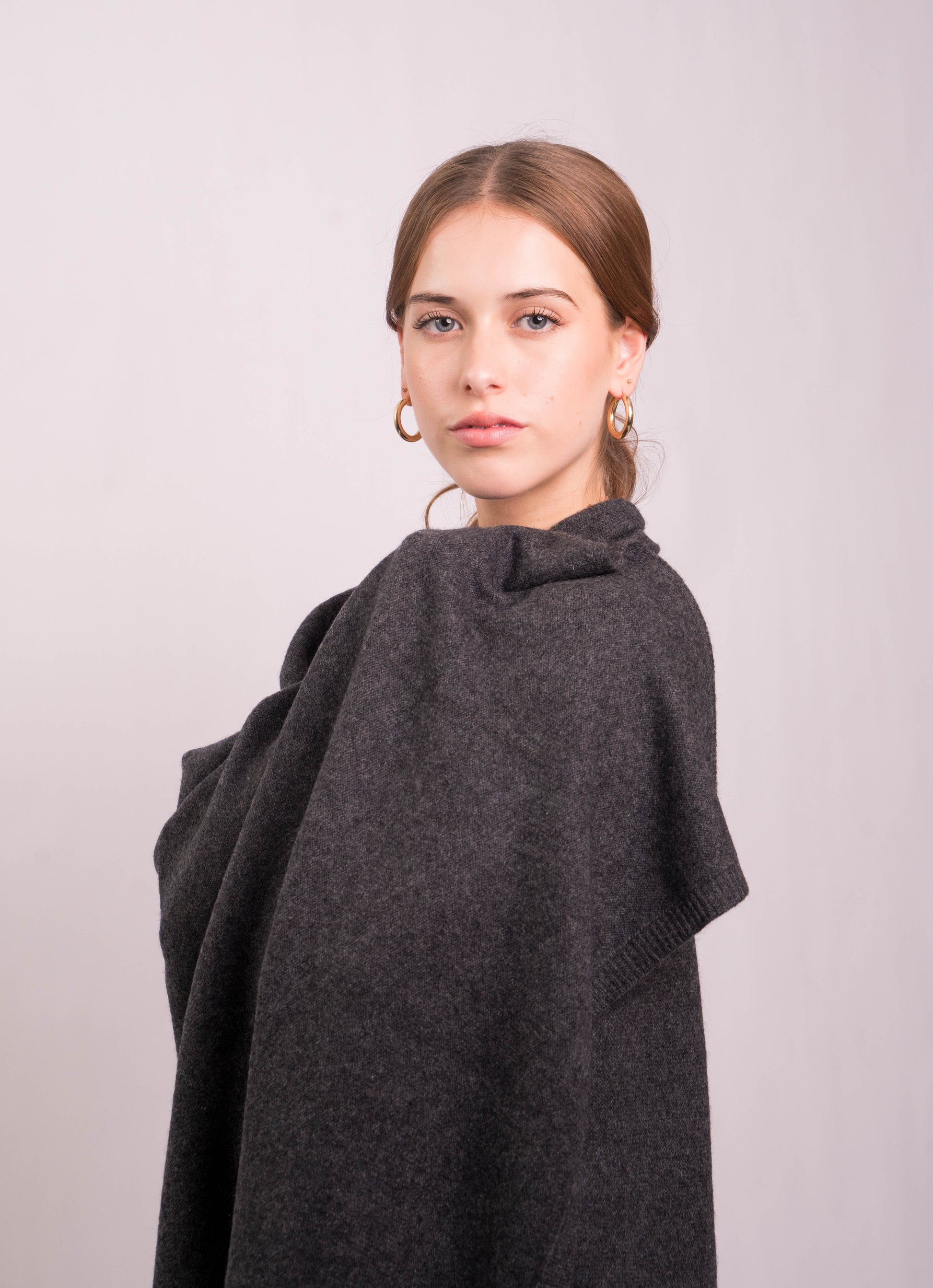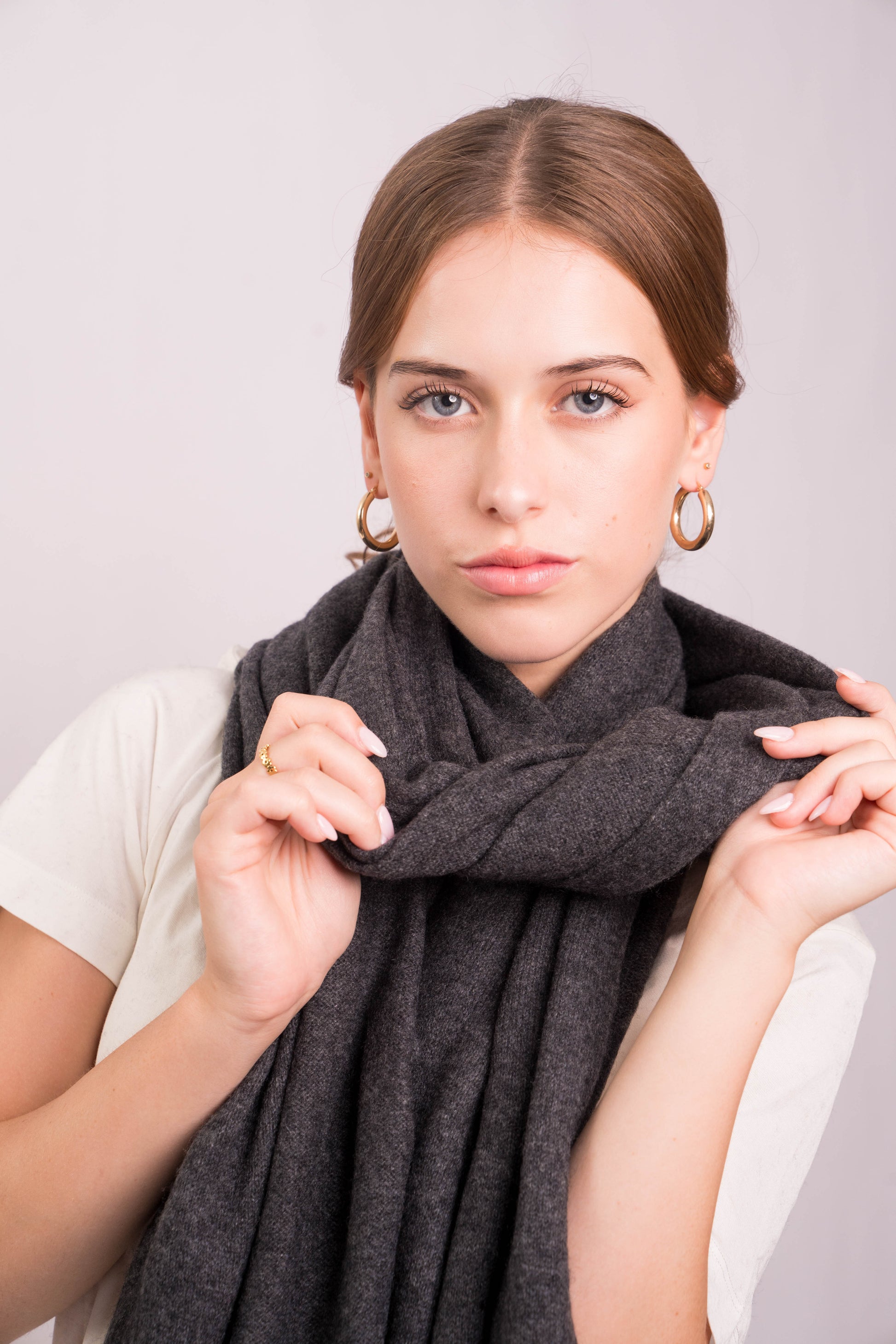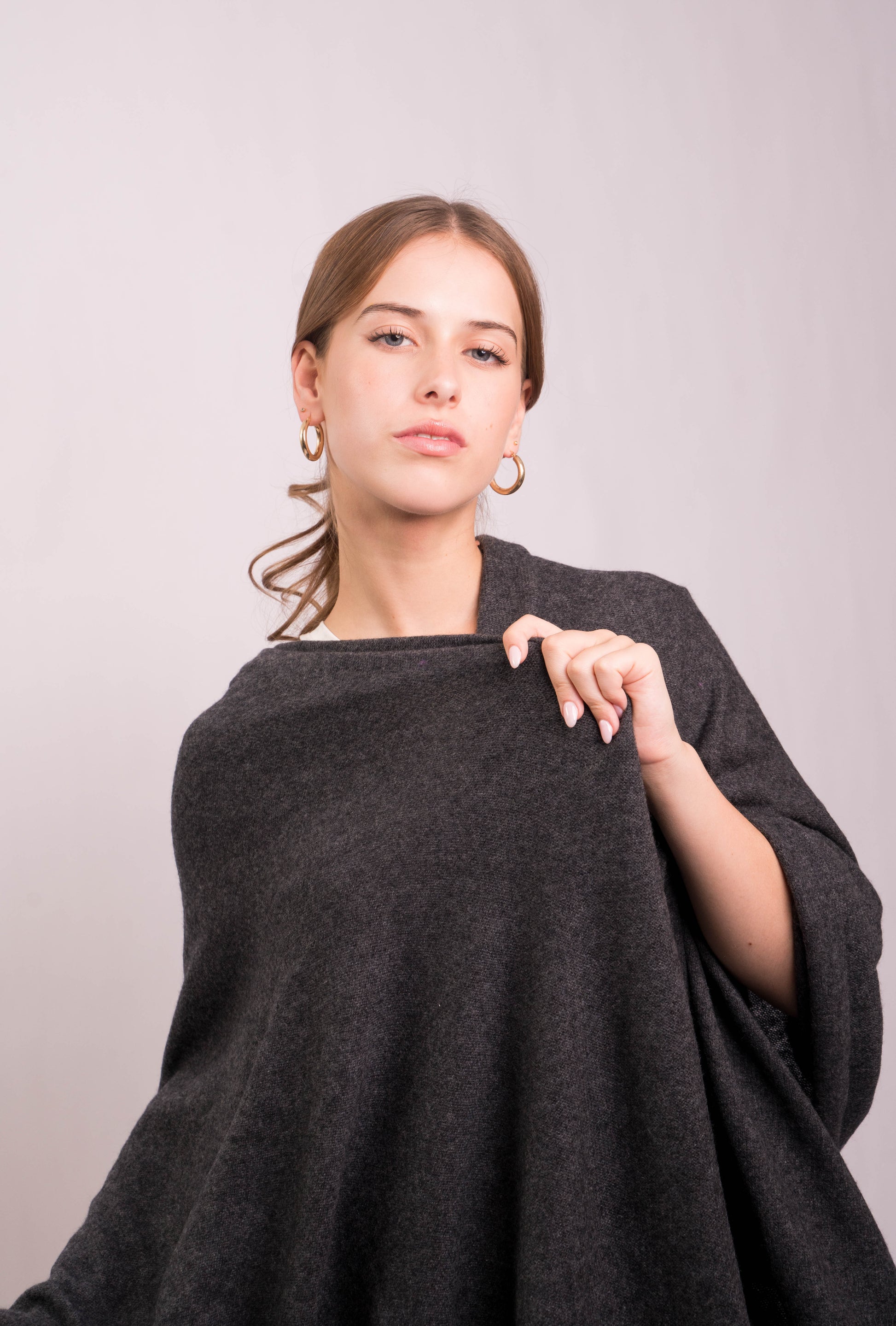 Its deep charcoal hue adds a refined, contemporary touch to any outfit, making it ideal for both casual elegance and elevated styling. Whether you’re jet-setting to new destinations, enjoying a cozy evening, or adding a sophisticated layer to your everyday look, this luxurious cashmere wrap is your ultimate travel companion.
