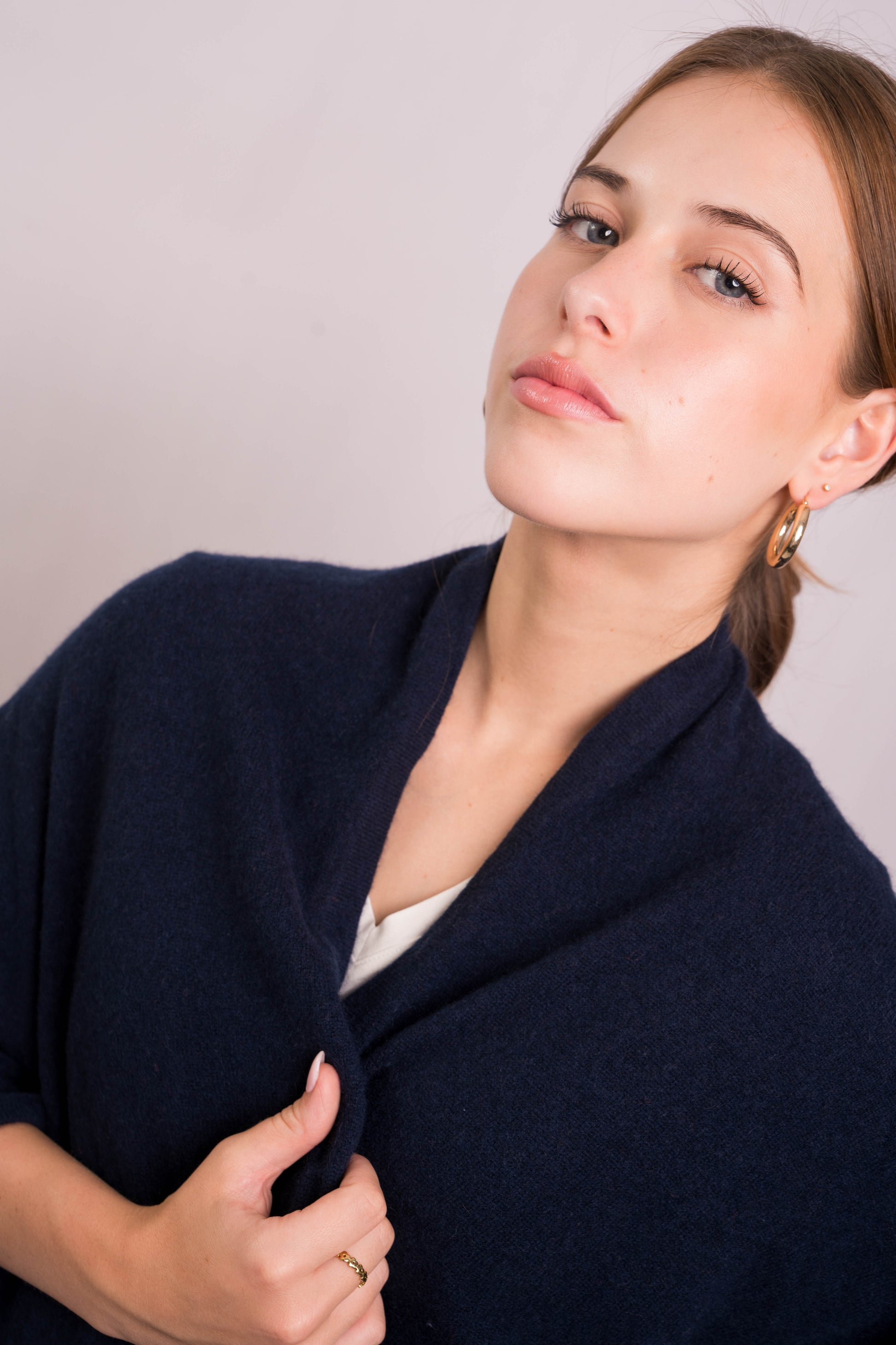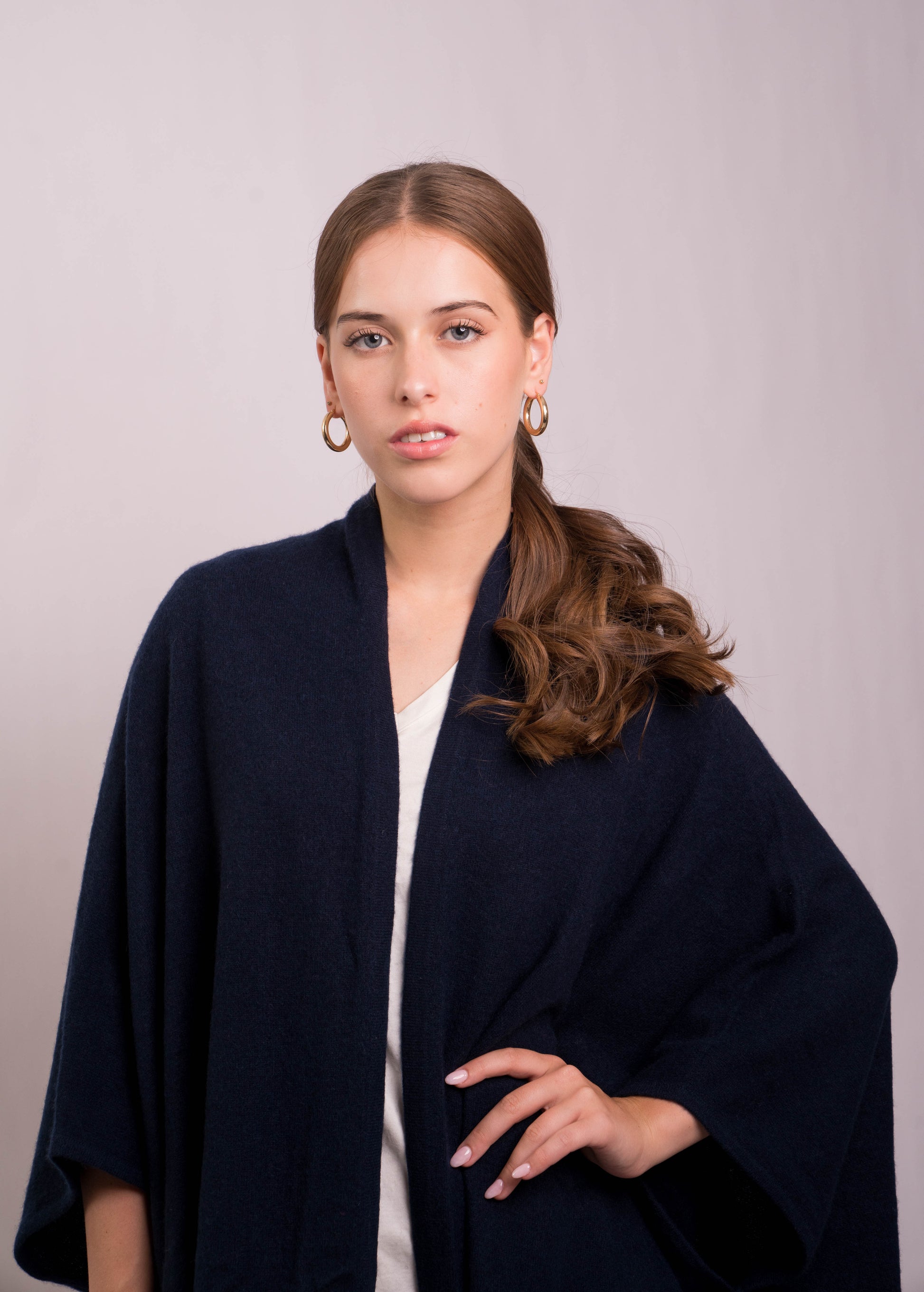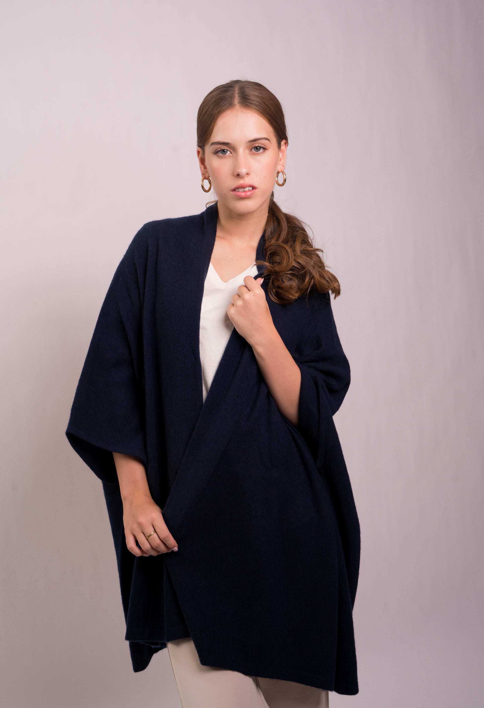 The deep navy hue, reminiscent of a starlit night sky, exudes timeless elegance, making it the ultimate wardrobe essential for both casual and formal ensembles. Whether you're layering up for a chilly evening, elevating your everyday style, or adding a touch of luxury to your travels, the Eclipse Navy Cashmere Wrap ensures you do so in refined comfort.