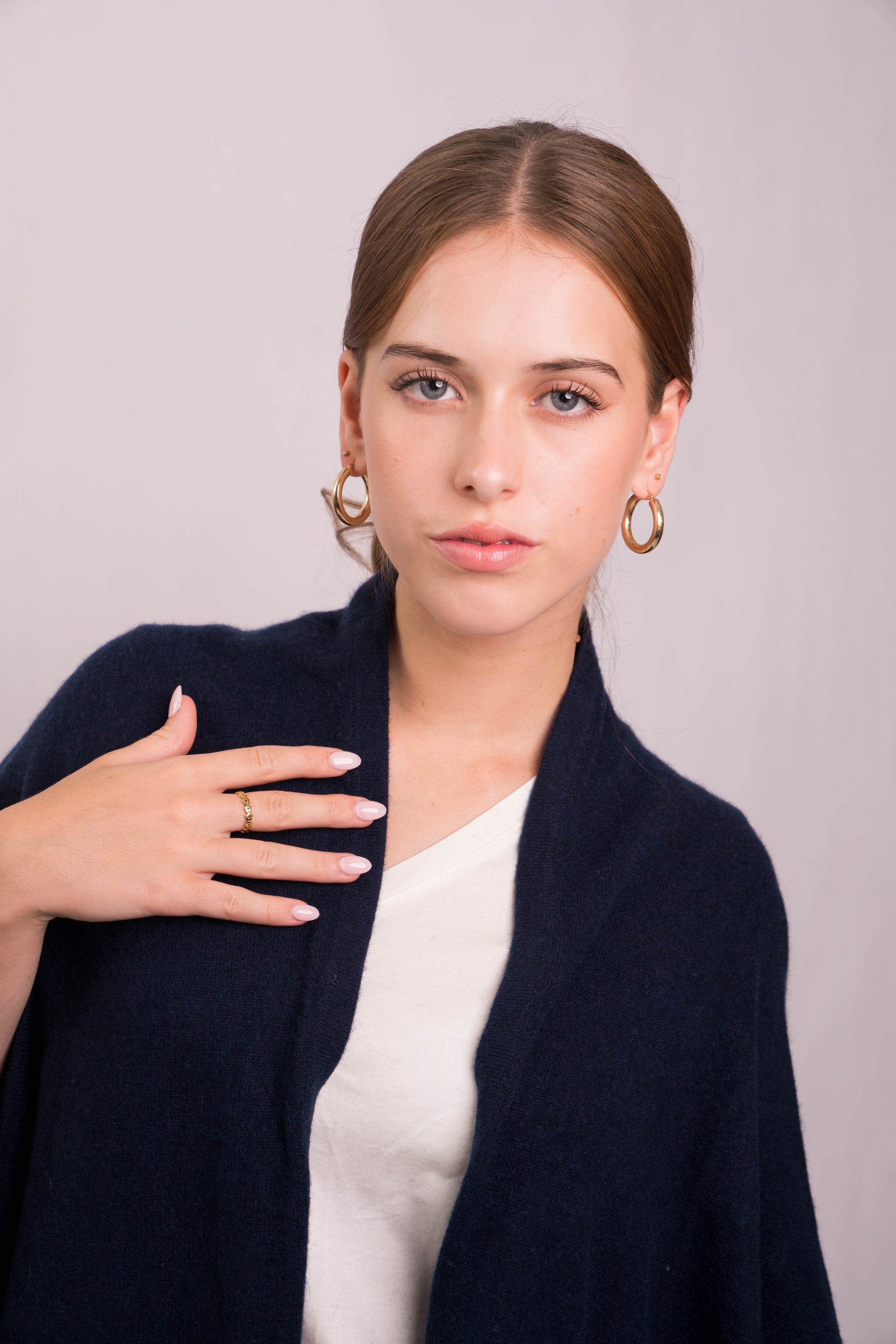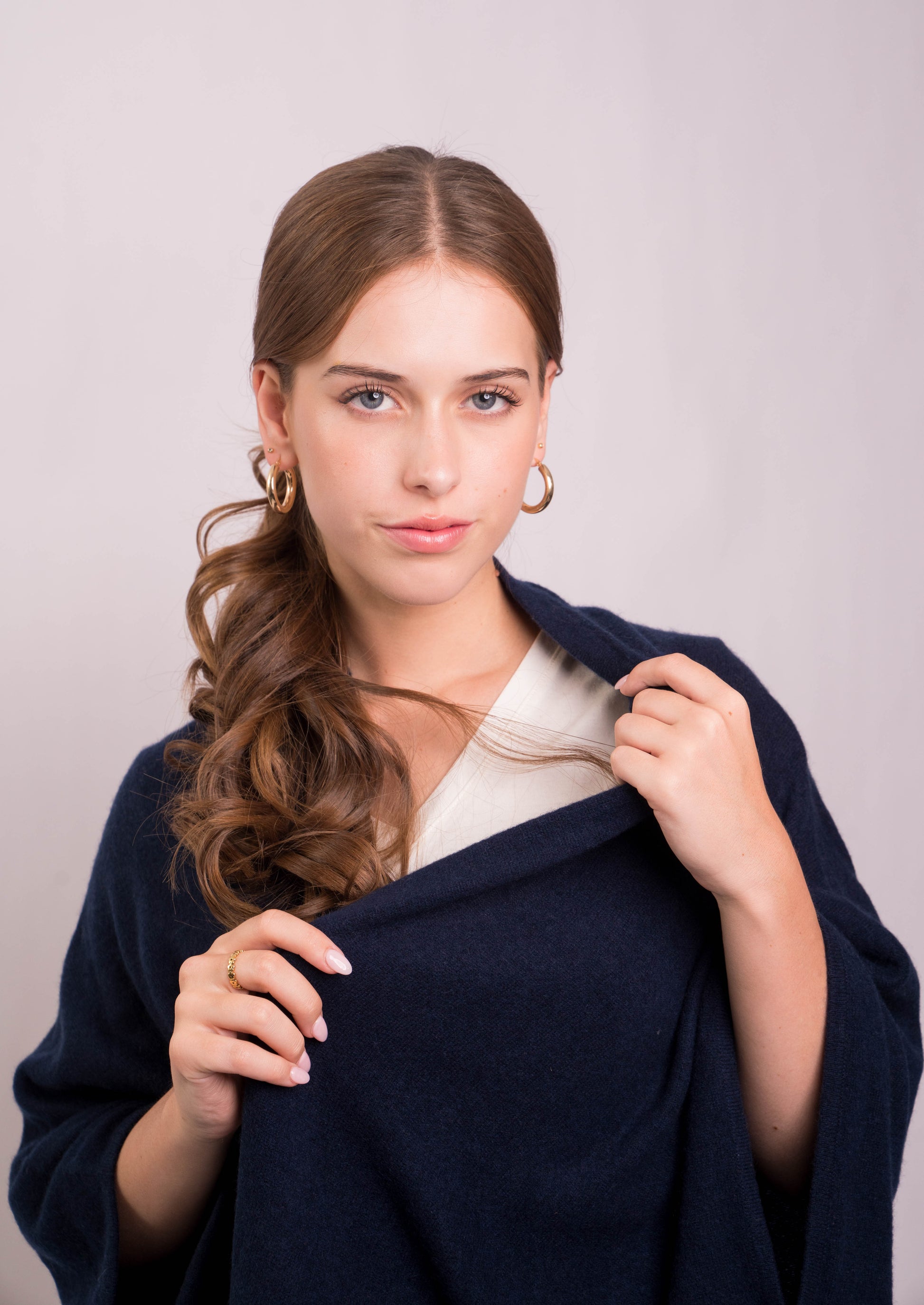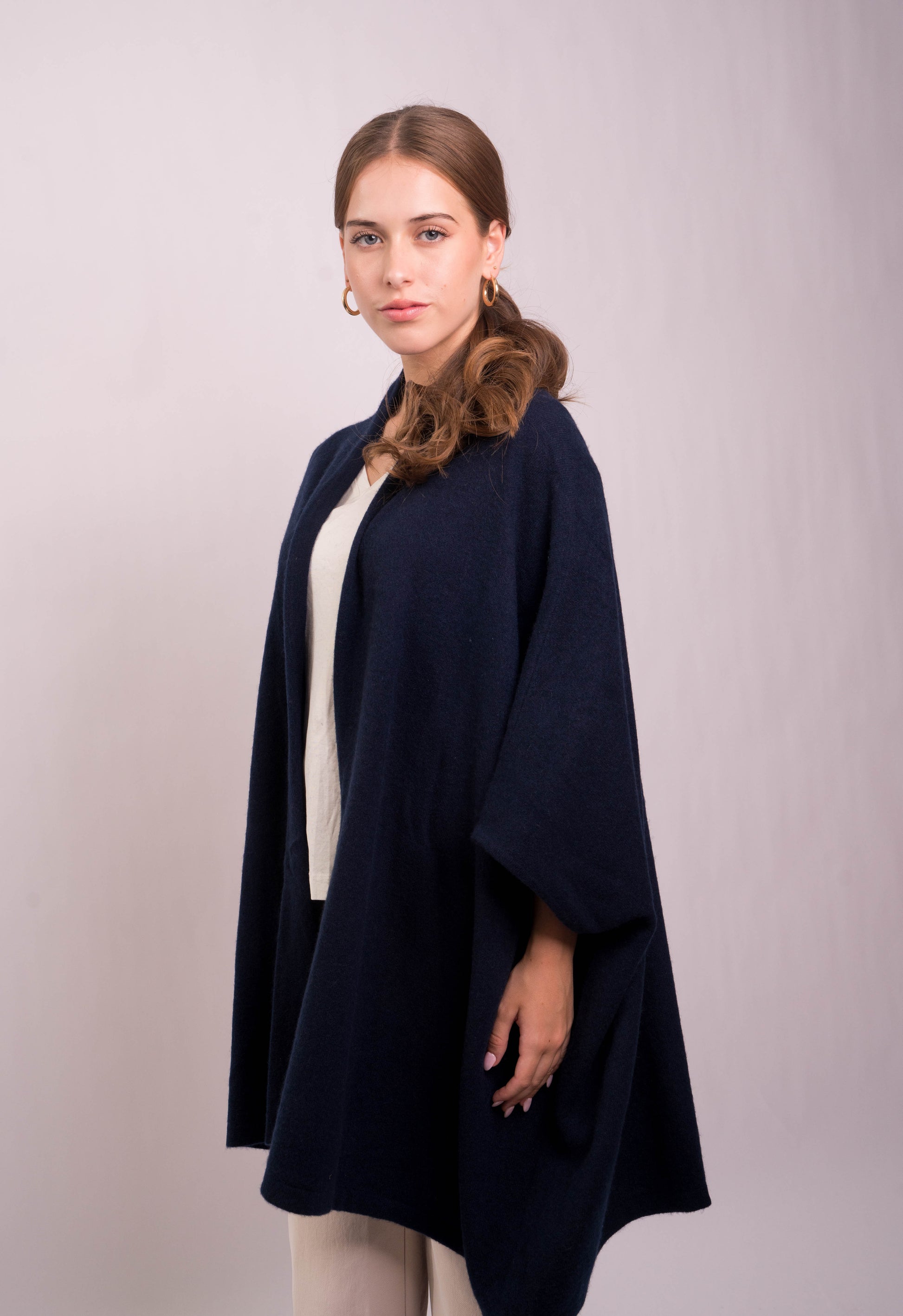The deep navy hue, reminiscent of a starlit night sky, exudes timeless elegance, making it the ultimate wardrobe essential for both casual and formal ensembles. Whether you're layering up for a chilly evening, elevating your everyday style, or adding a touch of luxury to your travels, the Eclipse Navy Cashmere Wrap ensures you do so in refined comfort.